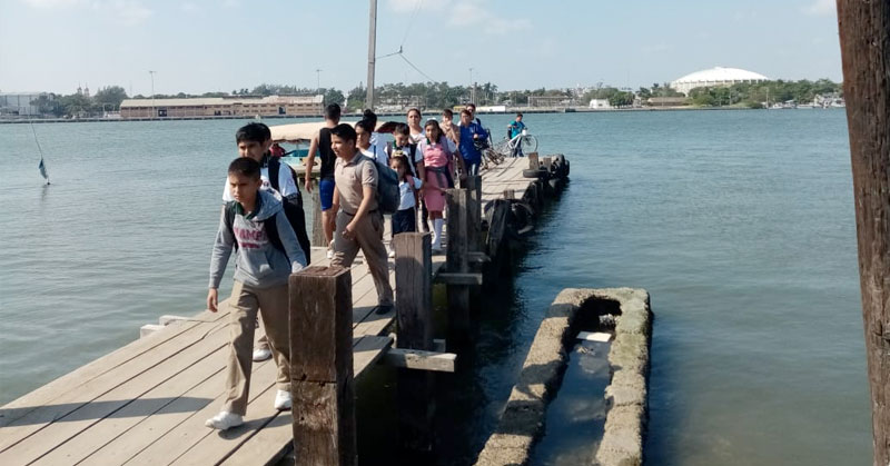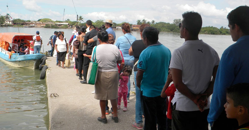 Por cierre del paso de lanchas, tienen que cruzar la colosal obra.