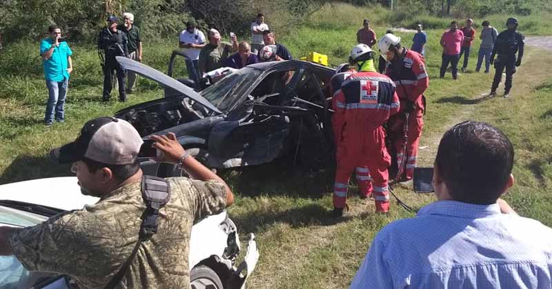 Padre de familia tuvo que ser extraído con herramienta hidráulica luego de ser embestido por un auto del año cuando viraba para entrar a un fraccionamiento en la carretera vieja a Mante