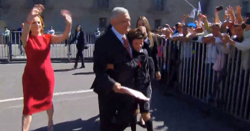 Niño burla seguridad de AMLO, él le dio un abrazo