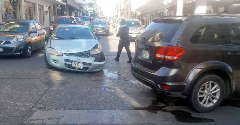 Conductor se distrae y no ve el rojo del semáforo y choca