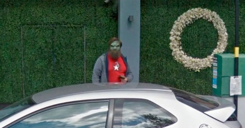 De acuerdo con medios locales, Stevie Hall, un hombre de 47 años, estaba navegando en el Street View de Google, con el fin de planear una visita en un mercado navideño en una calle muy transitada de la ciudad de Birmingham, cuando notó asustado a un hombre robusto, con playera roja y el rostro de color verde.