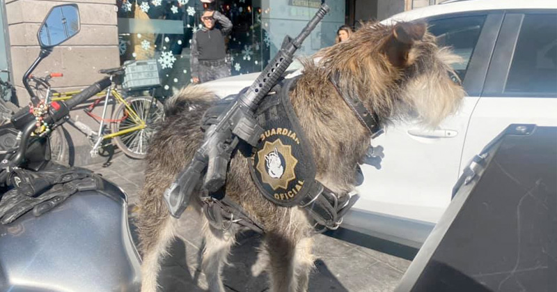 La peculiar vestimenta y su curioso tamaño le han valido al perrito volverse viral en redes.