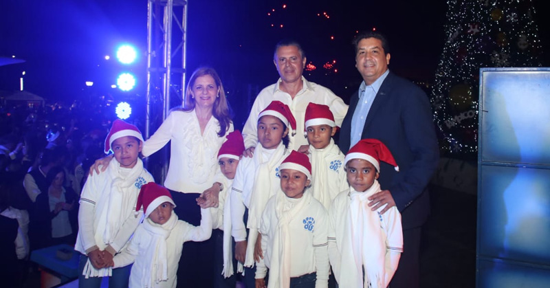 Cabeza de Vaca y Chucho Nader dan inicio a los festejos decembrinos con el encendido del Pino Navideño