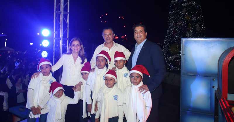 El Gobernador, Francisco García Cabeza de Vaca, y Chucho Nader, dieron inicio a los festejos decembrinos en el puerto jaibo con el encendido del pino navideño