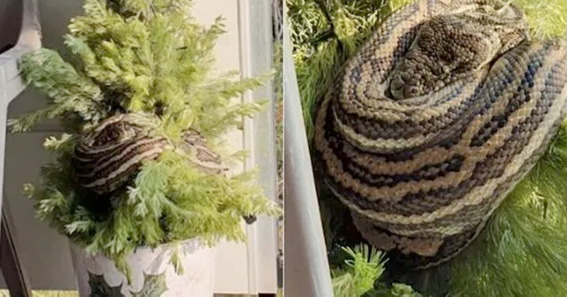 Familia encuentra una serpiente de tres metros en su árbol de Navidad en la entrada de su casa