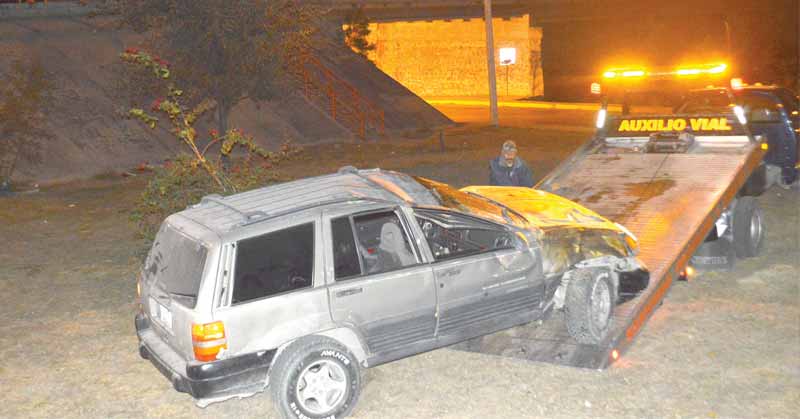 Conductor en presunto estado de ebriedad dudó al bajar hacia “el caracol” y terminó cayendo en un claro a un lado del puente: el vehículo quedó sobre el costado del copiloto