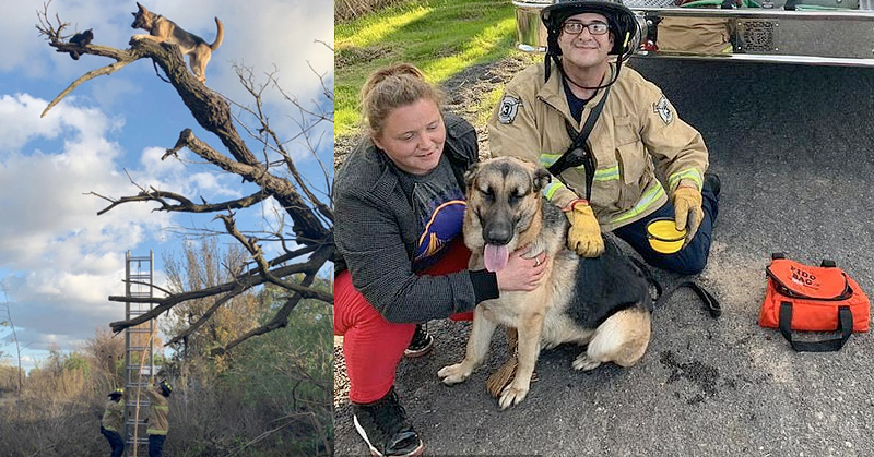 Rescatan a pastor alemán atorada en árbol por perseguir a gato