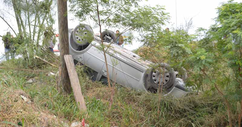 Los jóvenes argumentaron que un auto ‘se les metio’ y al perder el control fueron a caer con las llantas hacia arriba en un Predio de la colonia Horacio Terán