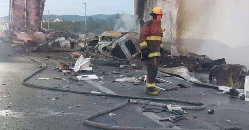 Un trailero murió calcinado luego que la unidad se incendiara luego que que impactara contra un muro en la autopista a Nuevo Laredo