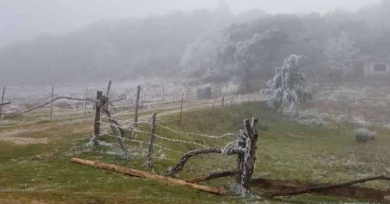 El frío está regalando postales heladas en diversos puntos de México, en la sierra de Guanajuato el panorama se pintó de blanco