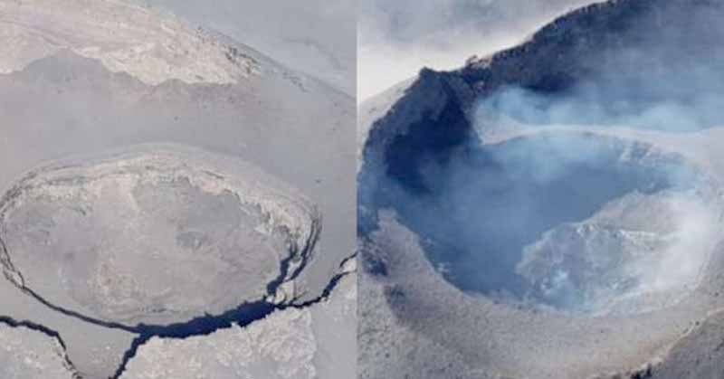 Durante el sobrevuelo se verificó la destrucción del domo número 85 del Popocatépetl, debido a que no hay éste no se encuentra visible