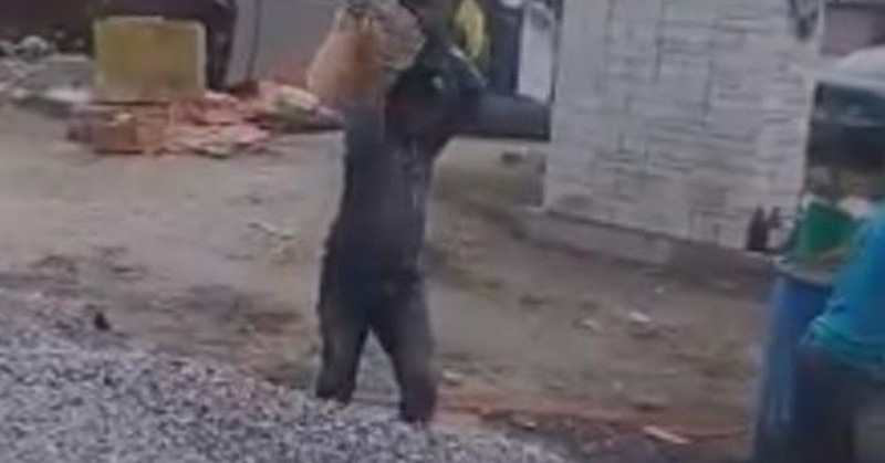 En la grabación se mira como Alejandro llena las cubetas de graba, se acerca a la maquina y con solamente el tacto sabe en que momento vaciarla.