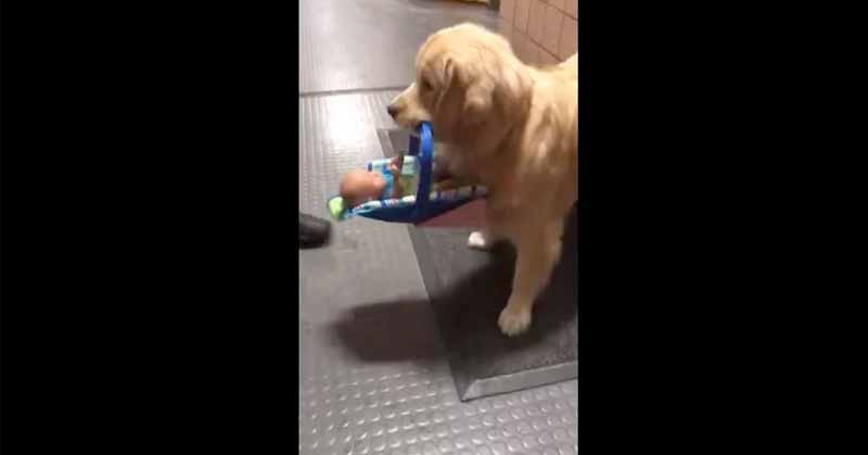 Perrito es ‘arrestado’ por robar juguetes frente a policías