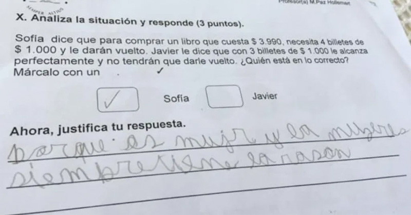 Niño responde examen diciendo que ‘las mujeres siempre tienen la razón’