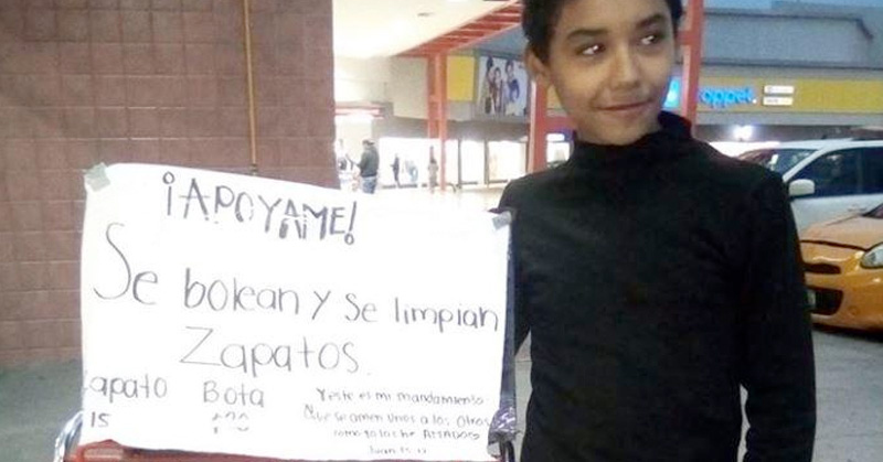 Niño bolea zapatos para comprar leche y pañales a sus sobrinitos huérfanos