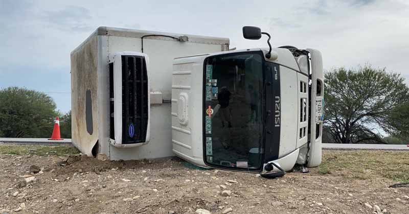 Repentinamente uno de los neumáticos tronó y esto ocasiona que perdiera el control de su trayectoria: terminó por recostarse sobre su lado derecho