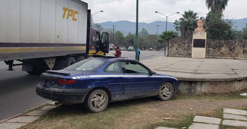Trailer le invade el carril y lo lanza contra la explanada de la calzada General donde se ubica un busto del Presidente Adolfo López Mateos