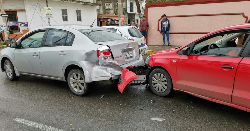 La falta de precaución por parte de un conductor que se desplazaba con dirección a Playa Miramar, ocasionó el choque múltiple enfrente de la Secundaria Melchor Ocampo.