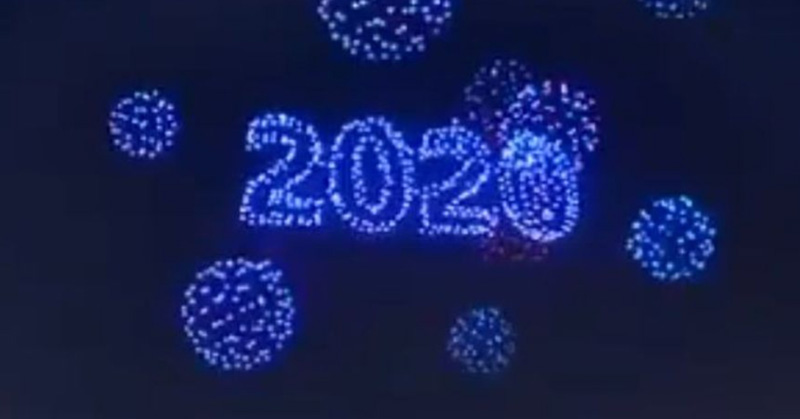 Los dispositivos dibujaron luego números durante la cuenta regresiva para el fin del 2019, para luego dibujar un gran «2020» y simular fuegos artificiales con luces.