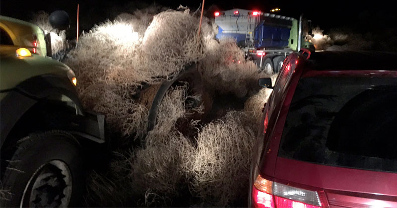 Durante más de 10 horas varios automóviles quedaron totalmente cubiertos por gigantescas plantas rodadoras en el estado de Washington.