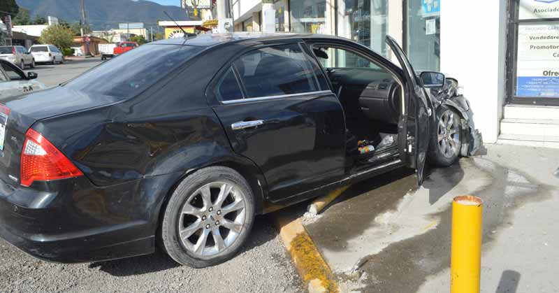 Una mujer dijo no haber visto el alto y proyecta a un Fusión contra un negocio donde golpeó una contención que fue a dar adentro del comercio