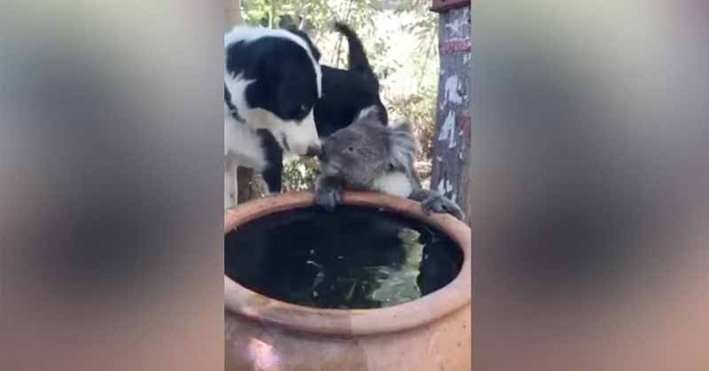 Perro comparte su agua con un sediento koala tras los incendios de Australia y se vuelve viral, el adorable video fue tomado por una familia