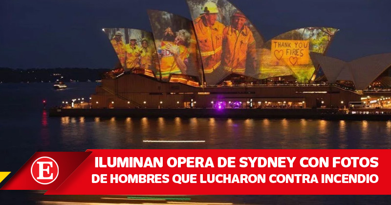 Iluminan opera de Sydney con fotos de lucharon contra incendio