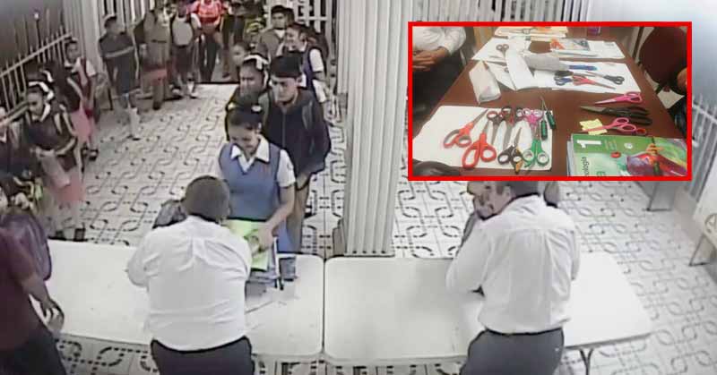 Encuentran desarmadores y tijeras durante revisión de mochilas en Madero