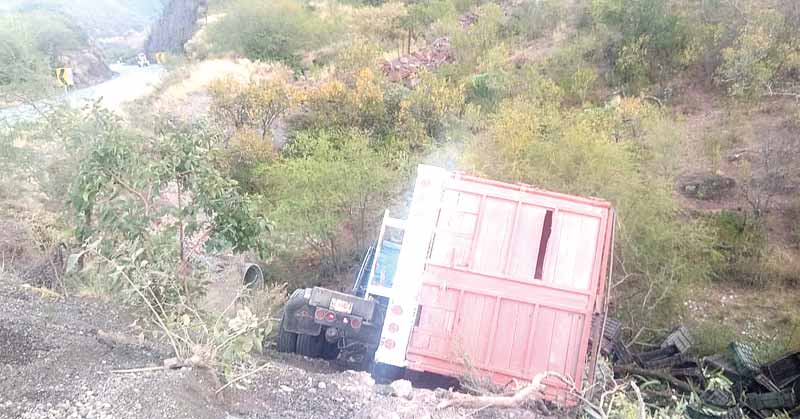 Camión cae a barranco