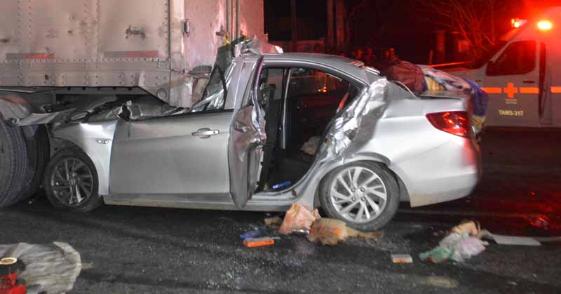 El gris de la carretera se tiño de rojo: un coche se impacto en la parte trasera de la caja de un camión propiedad de una empresa de paquetería, hay además dos heridos de gravedad
