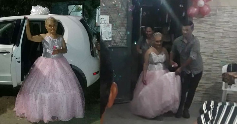 A sus 79 años, Nina, fue celebrada con decenas de invitados, vestido rosa de quinceañera, adornos florales y hasta bailó el vals con sus hijos e hijas.