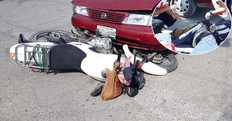 Motociclista es derribado por una dama al volante que no hizo el alto obligatorio al cruzar la “Avenida de la Paz” …el herido se hallaba literalmente “en un grito”