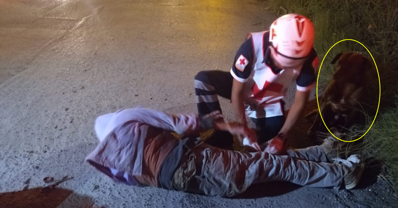 Indigente cae accidentalmente a una zanja y sufre varias lesiones, su fiel mascota alertó alos vecinos y tanto en la ambulancia como en el hospital permaneció fiel