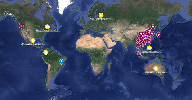 En el mapa, el cual se actualiza en tiempo real, se señala a la provincia de Wuhan, China, como el lugar en donde comenzó el brote de la epidemia.
