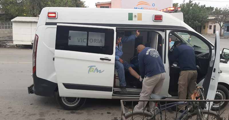 Vaya golpe se llevó un ‘Don’ cuando hacía alto a bordo de su ‘baica’ en el 27 Matamoros y fue embestido por una camioneta en color blanco