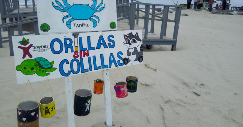 A orilla de Playa Miramar, asociaciones civiles y escuelas han instalado botes para recolectar colillas de cigarro.