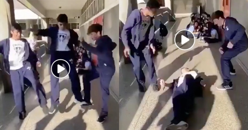 En redes sociales circula un video en el que se observa cómo un estudiante cae hacia atrás y golpea su nuca
