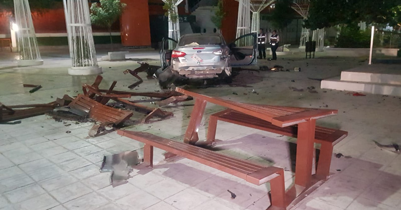 Luego de recorrer la avenida Francisco I. Madero conductor se avalanza sobre la explanada de la Unidad Deportiva Adolfo Ruiz Cortines y arrancó cinco bancas ‘de cuajo’. El auto fue abandonado