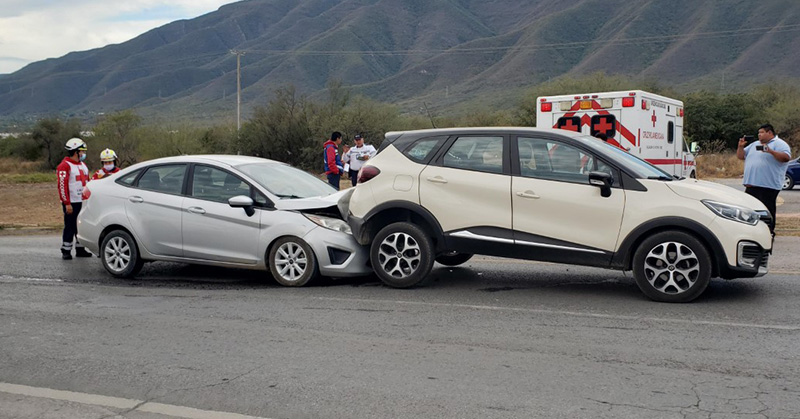 Apoyada solo sobre sus llantas delanteras quedó una Koleos al ser fuertemente chocada por alcance en el libramiento Naciones Unidas.