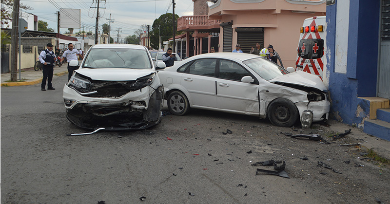 Dama al volante omite el alto correspondiente y provoca un fuerte choque que destruyó a ambas unidades y provocó lesiones a dos personas.