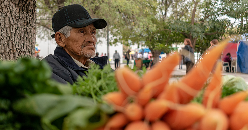 Don Ramón, es un hombre de campo quien a las 5.30 hrs. ya está vendiendo su verdura recién cortada afuera de la clínica del ISSSTE; todas a muy buen precio y de la mejor calidad