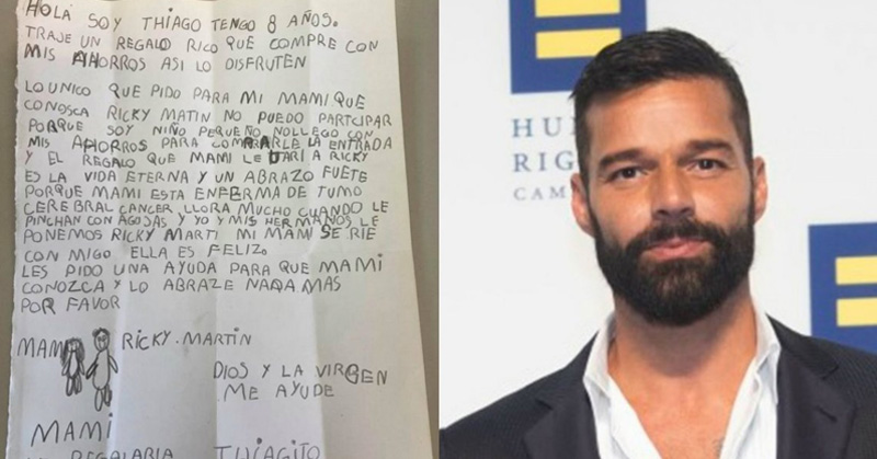 Niño gasta sus ahorros para que su mamá enferma conozca a Ricky Martin