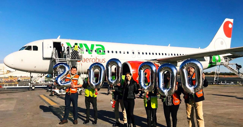 TAMPICO, TAMAULIPAS.- La aerolínea Viva Aerobus celebro el récord al alcanzar la cifra de 200 mil pasajeros transportados en vuelos en conexión, como parte del festejo sorprendió a la pasajero 200 mil quien volaba la ruta Tampico-Monterrey -Chihuahua con un regalo sorpresa y la entrega de un reconocimiento por parte del director general y de las autoridades aeroportuarias.
