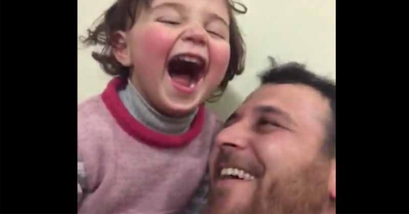 SIRIA.- En los últimos días se ha viralizado un impactante y conmovedor video en el que un hombre sirio finge que el ruido provocado por la explosión de bombas se trata de un juego, solamente para evitar que su hija de cuatro años se asuste con la situación.