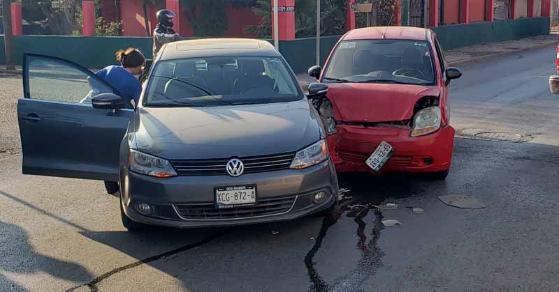 Por no hacer el debido alto en el cruce del 21 Matamoros, se atravesó al paso de un auto compacto: ahí mismo se arreglaron