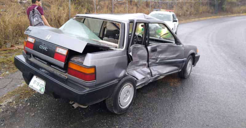El pavimento mojado a causa de la llovizna mañanera de ayer se conjugó con el exceso de velocidad e hicieron derrapar y chocar a un estudiante