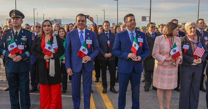 El abrazo entre autoridades de los tres órdenes de gobierno de Estados Unidos y México, simboliza la unión entre ambas naciones con lazos de amistad y colaboración.