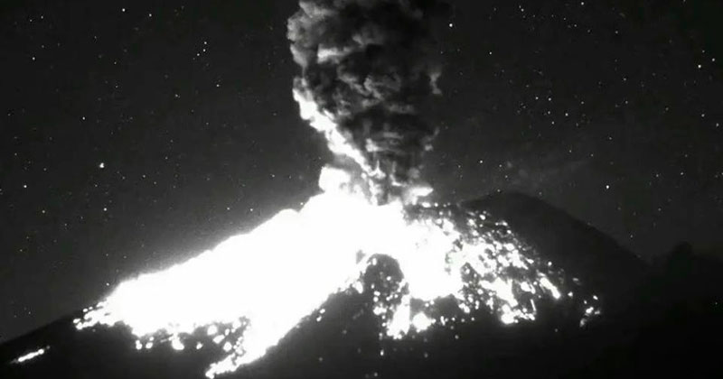 Una explosión acompañada de la impresionante caída de un rayo fue captada la madrugada de este domingo en el volcán Popocatépetl