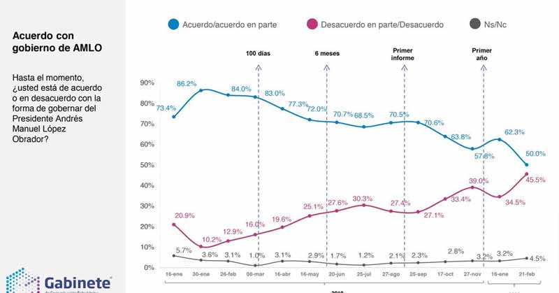 El Gabinete de Comunicación Estratégica revela una caída en la confianza hacia López Obrador en las últimas semanas