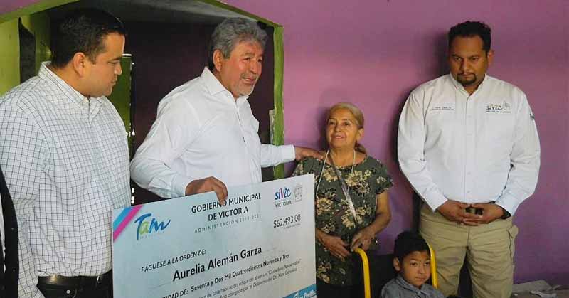 Los 107 pesos que pagó de predial la señora Aurelia Alemán Garza, se convirtieron en 62 mil 493 pesos, al validarse el Seguro Contra Incendios que el Gobierno Municipal de Victoria, que preside el Doctor Xicoténcatl González, beneficia al “Victorense Responsable”, con el solo hecho de pagar su predial